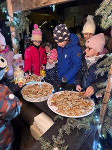 Součástí večera byla i vánoční kavárnička, kde si děti i rodiče pochutnali na voňavých perníčcích, lineckých jablečných koláčích a zahřáli se teplými nápoji.