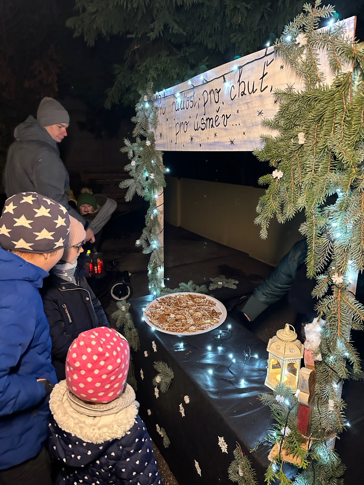 Součástí večera byla i vánoční kavárnička, kde si děti i rodiče pochutnali na voňavých perníčcích, lineckých jablečných koláčích a zahřáli se teplými nápoji.