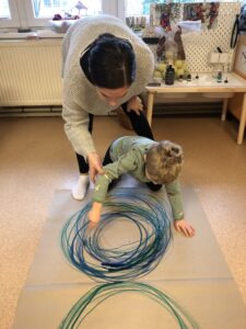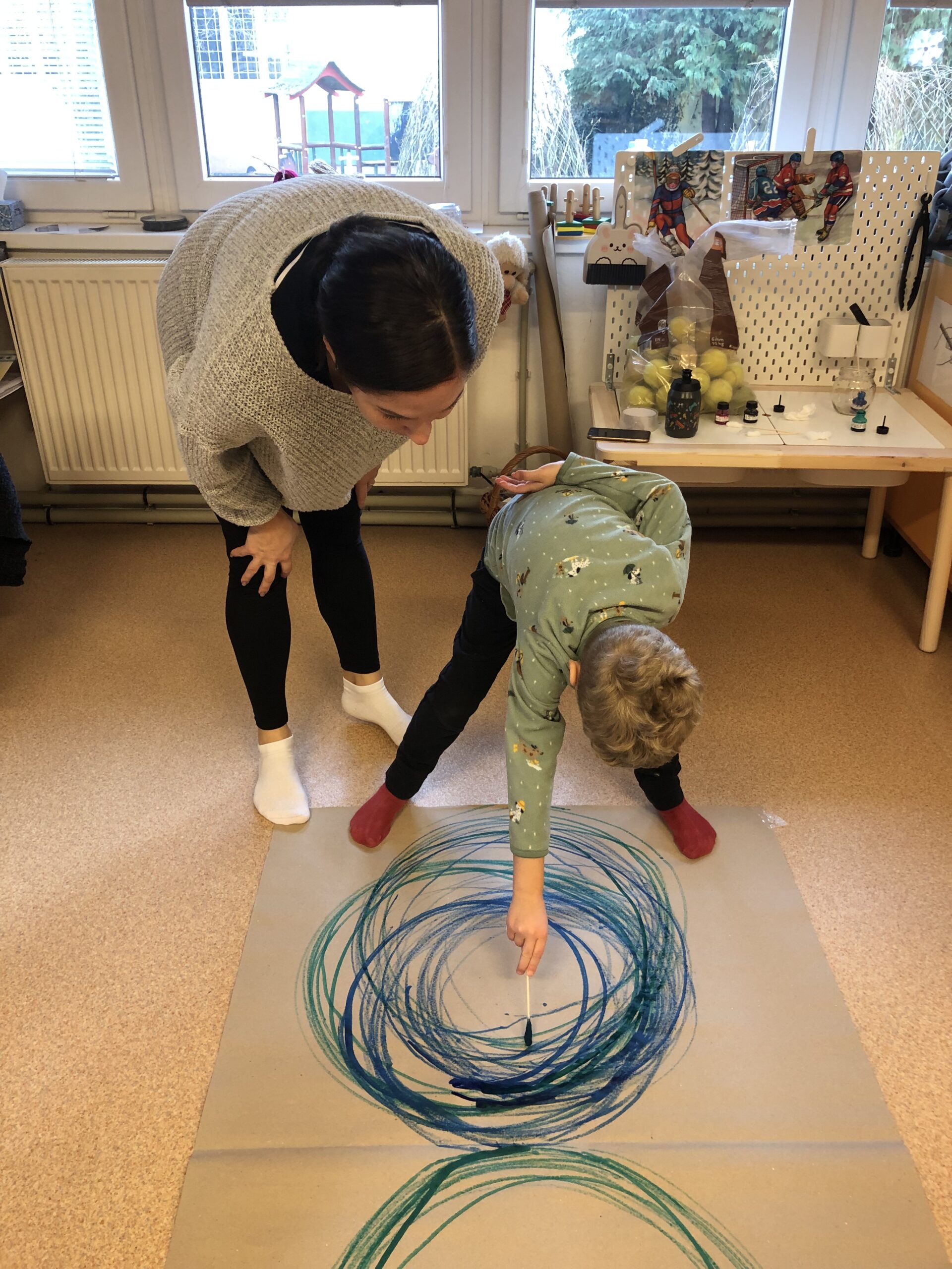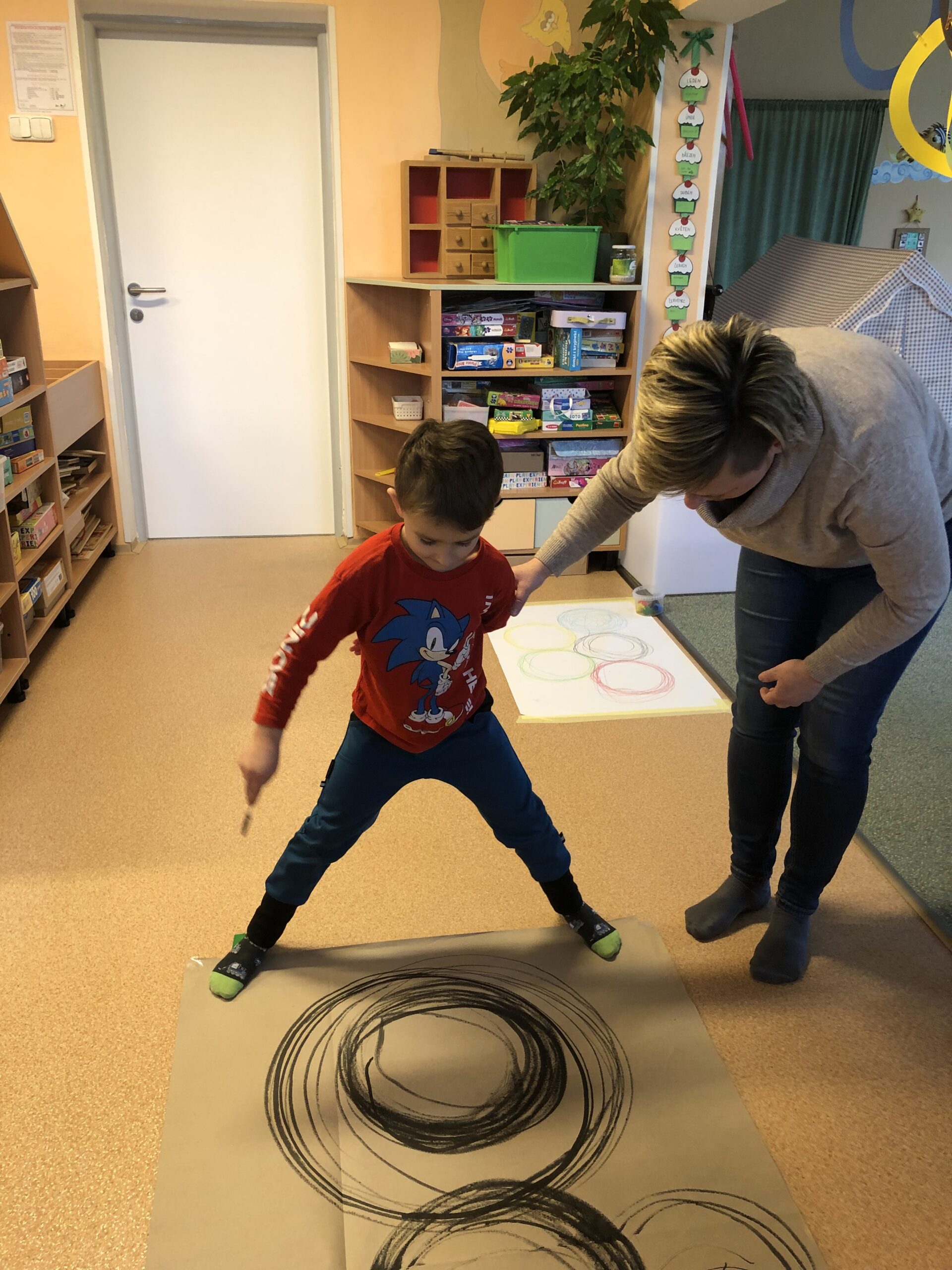 V současné době probíhá ve školce kurz grafomotoriky pro děti (předškoláky) a jejich rodiče. O kurz je velký zájem, proto probíhá ve třech skupinách, aby každé dítě mělo dostatek prostoru a individuální podpory. Hravou formou uvolňujeme ruku, zápěstí a trénujeme koordinaci oka a ruky. Velmi nás těší také pozitivní zpětná vazba ze základních škol, kde potvrzují, že dětem kurz usnadňuje přechod k psaní. Na kurz grafomotoriky bude navazovat kurz Metoda Elkonin – trénink jazykových schopností, který hravou formou učí děti slyšet hlásky ve slovech dříve, než uvidí písmena.