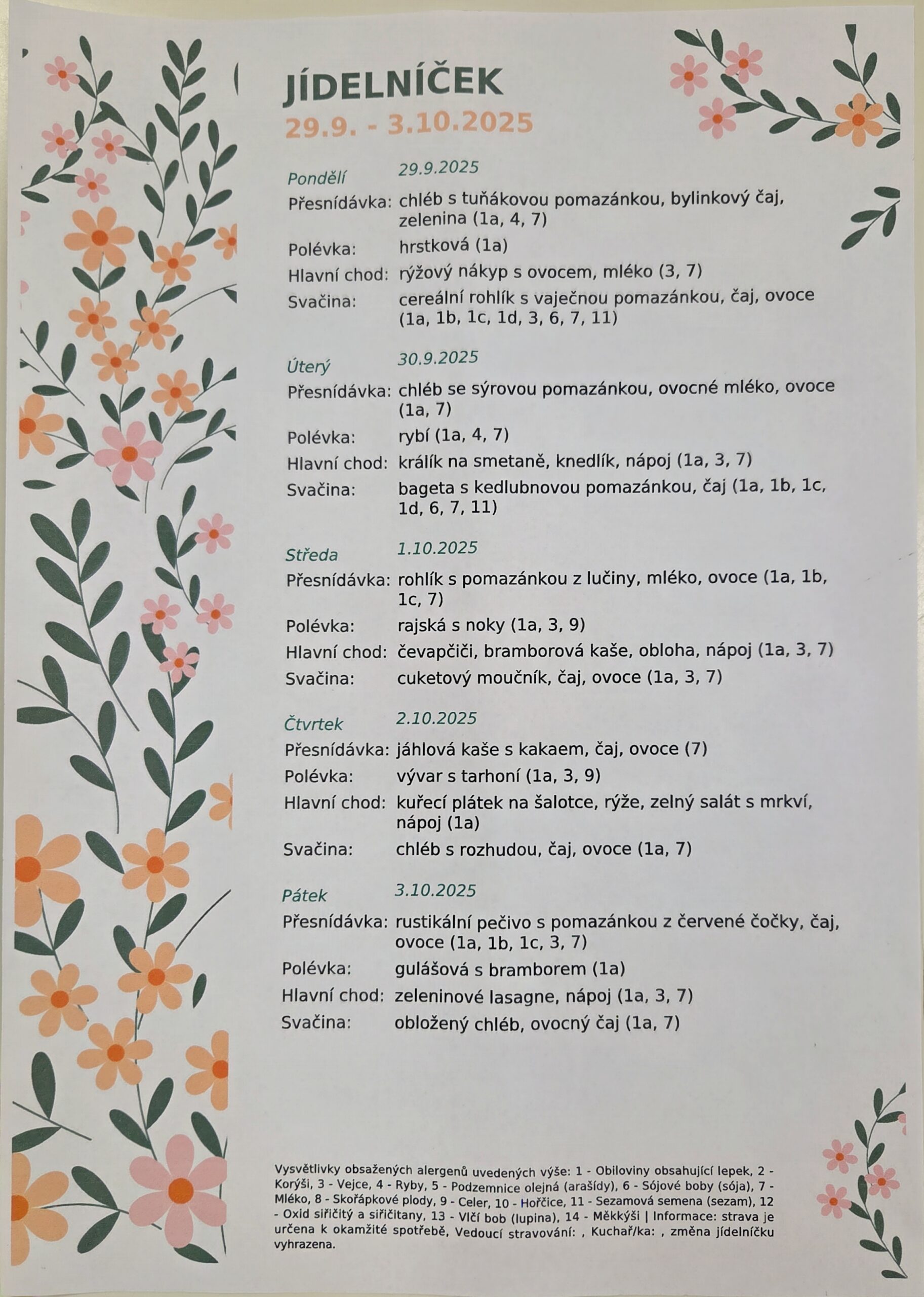 Ukázkový jídelníček
