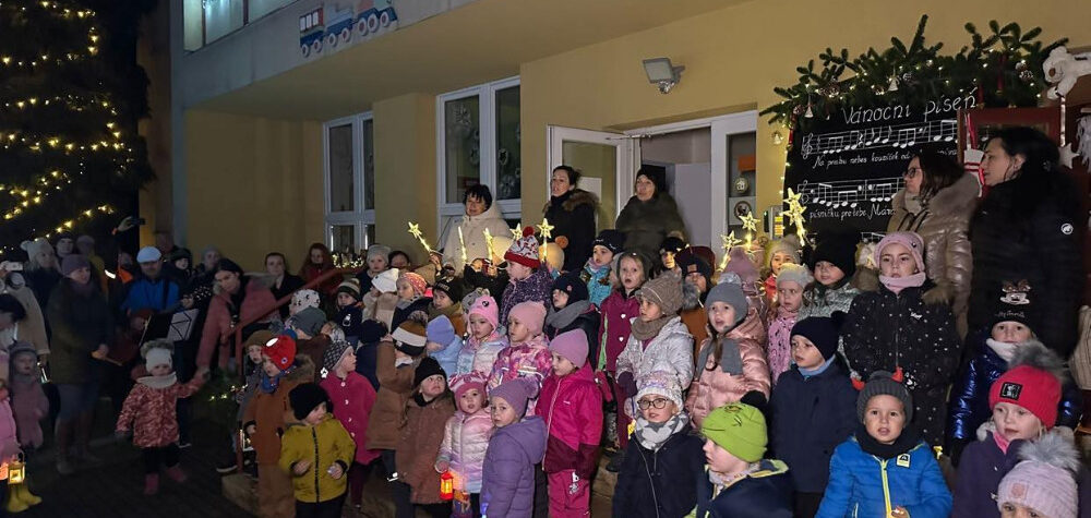 Děti ozdobily vánoční stromeček před školkou vlastnoručně vyrobenými ozdobami, zatímco zvoněním na zvoneček si šeptaly svá tajná přání. Paní kuchařky připravily občerstvení a nabídly napečené dobroty, které všechny potěšily. Na rozloučenou si každý odnesl zlatý oříšek jako milou vzpomínku na tento kouzelný adventní večer.