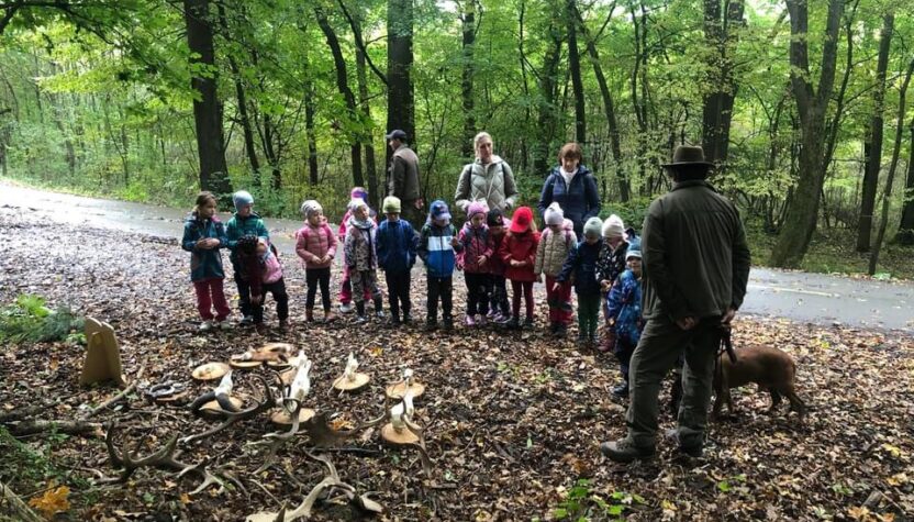 Začátkem října jsme se s nejstaršími dětmi opět vypravili vlakem do Haluzic, kde na děti čekala zajímavá beseda přímo v přírodě v haluzickém lese. Pan hajný z Lovčické hájovny dětem krásně přiblížil život v lese, jaká zvířata tu můžeme potkat, jaké rostliny zde rostou. Pro zpestření vyprávění si pro děti připravil i několik vycpaných zvířat, vyčiněných kůží a trofeje z vysoké zvěře. Pro děti byla zážitkem samotná cesta vlakem i velmi zdařilý výklad pana Hajného.