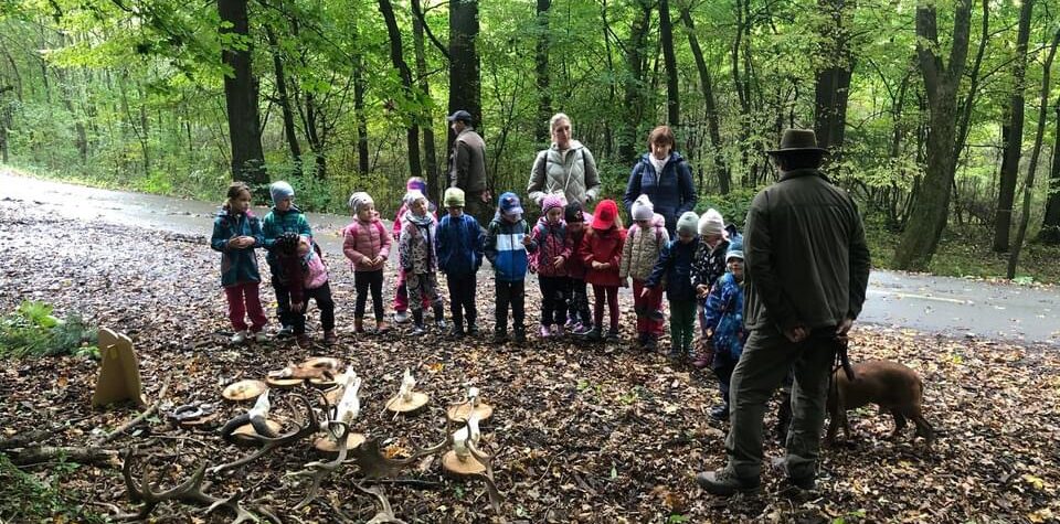 Začátkem října jsme se s nejstaršími dětmi opět vypravili vlakem do Haluzic, kde na děti čekala zajímavá beseda přímo v přírodě v haluzickém lese. Pan hajný z Lovčické hájovny dětem krásně přiblížil život v lese, jaká zvířata tu můžeme potkat, jaké rostliny zde rostou. Pro zpestření vyprávění si pro děti připravil i několik vycpaných zvířat, vyčiněných kůží a trofeje z vysoké zvěře. Pro děti byla zážitkem samotná cesta vlakem i velmi zdařilý výklad pana Hajného.