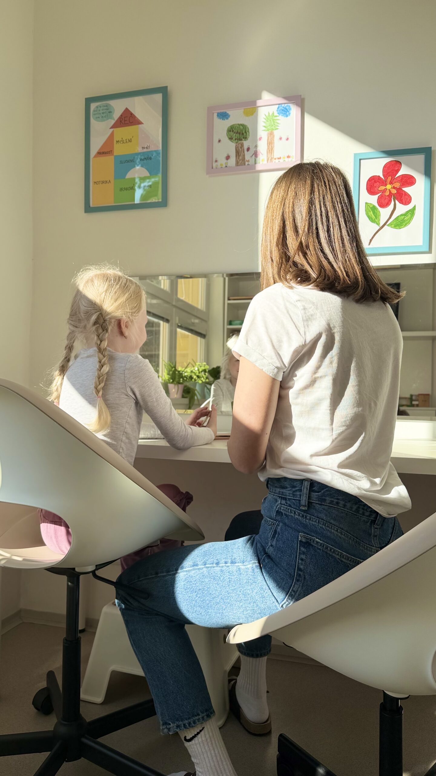 Při práci využíváme logopedické pomůcky, obrázkové materiály, pohádky, pracovní listy i komunikační hry.