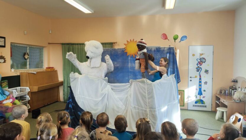 Opět nás navštívilo Divadlo paní Riedlové tentokrát se zimní pohádkou. Pohádkou nás provázel černoušek Bongi, který se vypravil na sever, do Grónska, aby konečně uviděl sníh. Cestou se seznámil s eskymákem Nanukem a ledním medvědem Ursusem a spolu s nimi zažíval velká dobrodružství – poprvé lovil ryby, uviděli sníh a potkal Sněhovou vločku. V představení nechyběly velké krásné loutky a veselé písničky, do kterých byly zapojeny i děti.